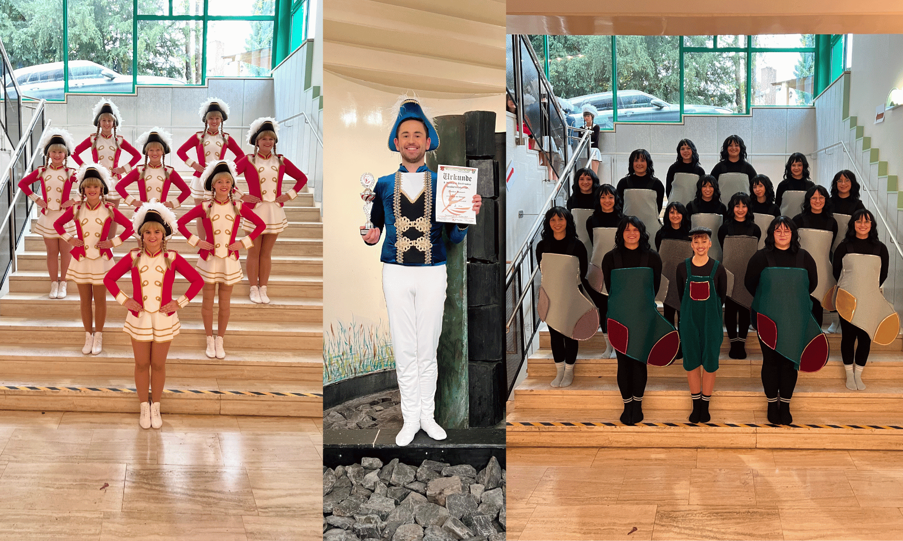 Kurz danach ging es für unsere Schautänzerinnen mit ihrem neuen Tanz „Trommelwirbel – entführt im Schleudergang“ auf die Bühne, jedoch noch mit leicht reduzierter Personenanzahl. Auch sie zeigten mit ein paar kleinen Fehlerchen einen guten ersten Durchgang und konnten ihr Ziel einer Punktesteigerung zur letzten Session erreichen. 380 Punkte erhielten sie für ihre Leistung. 🥳